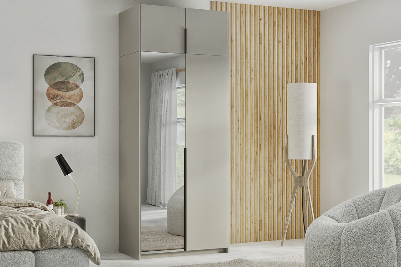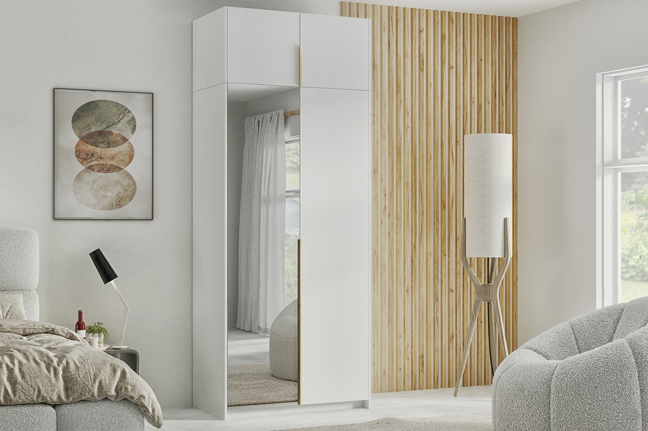 Szafa otwierana "A" 100cm, to idealne rozwiązanie do minimalistycznych i nowoczesnych wnętrz. Zapewnia wygodę i funkcjonalną organizację przechowywania. Do wyboru mamy uchwyt w kolorze złotym lub czarnym, który nadaje szafie charakter i skomponuje się z każdym wnętrzem.